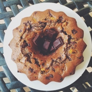 From my experience. I divide a 100-gram bar of milk chocolate into two parts. I grate one half into the batter and cut the other half into 1x1 cm cubes. I also fold them into the batter along with the orange. As a result, the muffins will have warm melted chocolate inside along with a piece of orange. Enjoy your meal!