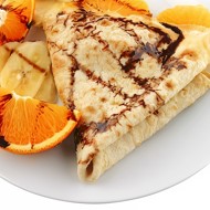 Heat a skillet well and pour a small amount of vegetable oil. Pour ¼ cup of batter into the skillet, quickly spreading it over the surface and sprinkle with 1½ teaspoons of chocolate chips. Cook until golden brown for about 1 minute, then flip and cook for another minute. Grease the skillet with butter after each pancake. Repeat the same with the remaining batter.