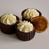 Once the cupcakes have cooled, decorate them with frosting. Melt the chocolate, allow it to cool, and then mix it with cream cheese and vanilla sugar.