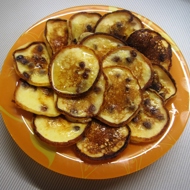 While the finished pancakes cool on a paper towel (absorbing excess oil), and the next batch is frying, mix honey with orange juice in a separate bowl (squeeze a few wedges from half an orange for every 2 teaspoons of honey). Brush each finished pancake with the prepared sauce.