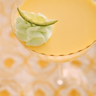 Whip the 38% cream to stiff peaks (or any other whipping cream), gradually adding the fine white sugar. Add the fresh lime juice and a tiny drop of food coloring. Fill a pastry bag with the prepared whipped cream and decorate the possets.
