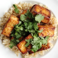 Preheat the oven to 356°F. Place the tofu on a baking sheet, drizzle with the sauce. Optionally, sprinkle with sugar on top. Bake for 15–20 minutes.