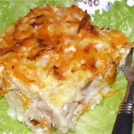 Place the fish in a greased baking dish or skillet. Top with a layer of grated carrot, then onion, and evenly pour mayonnaise over everything.