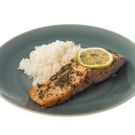 Garnish the cooked salmon with lemon slices and serve immediately.