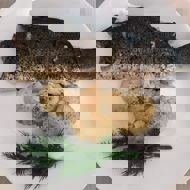 Clean the fish, wash the dill, and stuff the fish with it. Place it in a baking dish; for cleanliness and to prevent the fish from sticking, you can add parchment paper between the fish and the dish.