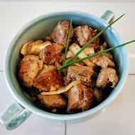 Line a baking dish with foil. Cut the liver into cubes and place it in the foil. Add the onion.