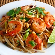 Pad Thai is usually served topped with crushed peanuts and a slice of lime on the plate.