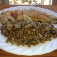Before serving, stir in the lentils the lemon juice, parsley, a quarter teaspoon of pepper, and a tablespoon of olive oil.