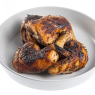 Preheat the grill. Remove the pieces of chicken from the bowl, shaking off the excess marinade (to prevent burning), and grill for twenty-five minutes until they have a nice crust, turning occasionally. Let cool for ten minutes and serve. If cooking at home, sear the chicken in a grill pan, then finish cooking in an oven preheated to 356°F for 40-45 minutes.