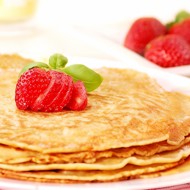 Mix a glass of milk, eggs, sugar, salt, and three tablespoons of flour to make a batter that resembles thin sour cream. In a well-heated, greased skillet, cook eight pancakes.