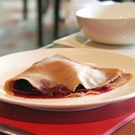 Place half a teaspoon of jam in the center of each pancake, fold into quarters. Stack the finished pancakes in a pot, brushing each layer with melted butter.
