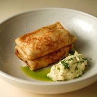 Make the remoulade sauce. To do this, blend together mayonnaise, parsley, curry, apple, gherkins, mustard, lemon juice, garlic, and basil.