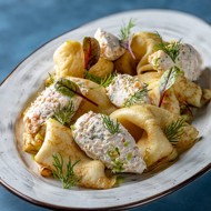 Pancakes with Salmon Rillettes and Homemade Cheese