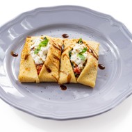 Place the filling with spinach and stracciatella on the crepes and roll them up.