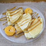 Serve the pancakes hot, adding a topping of your choice, such as caramel or condensed milk.