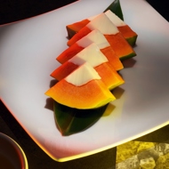 When the milk thickens, take out the papaya and carefully slice it into pieces with a sharp knife.