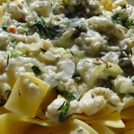Pappardelle with White Fish, Roquefort, and Spinach Sauce