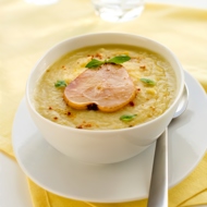Before serving, reheat the pureed soup over low heat. Once it begins to boil, add the grated peeled apple. Cook for 3–4 minutes.