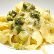 Add the sliced asparagus, bring to a gentle boil, add salt, pepper, and cover with a lid. Keep on low heat for 5 minutes.