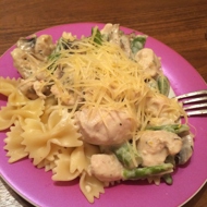 Pasta with Chicken and Mushrooms in Cream Sauce