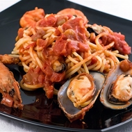 Using a knife, scrape the 'beards' off the mussels and rinse them under cold water. Discard any mussels with damaged shells and those that do not close immediately when touched. Place them in a large pot with water, chopped celery, and a pinch of salt. Cover and cook over medium heat for 4–5 minutes until the mussels open. Remove them with a slotted spoon, discarding any that remain closed. Extract the mussels from their shells and, if they are too large, cut them in half with kitchen scissors. Strain the broth through a fine sieve and set aside.