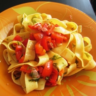 Take a large pot of salted water and bring it to a boil. Add the tagliatelle, let it boil, and cook for 8–10 minutes until soft. Drain and mix with the mixture in the bowl. It can be served warm or cold.