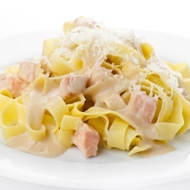 Then add the cooked pasta to the skillet with the fish and cream. Mix well.