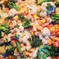 Add carrots, broccoli, cauliflower, pumpkin, spinach, and pour in the cream. Bring to a high heat, and once the cream boils, reduce the heat and simmer for another 10–15 minutes.