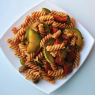 Pasta with Zucchini and Bell Peppers in Tomato Sauce