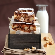 Spread the batter evenly in the baking dish and bake until done, about 25-30 minutes. Cool in the dish, transfer to a plate, and cut into squares.