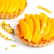 Fill the baked pastry shells with the cream and decorate with slices of mango and papaya.