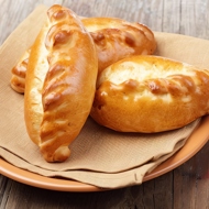 Roll out the dough to a thickness of 3 mm and cut out 6 circles with a diameter of 12 cm. Brush the edges of each with lightly beaten egg. Place the filling in the center of each and pinch the edges tightly.