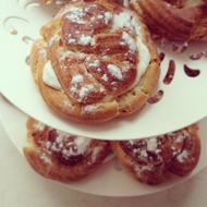 When the pastries are covered with a dense golden crust, remove them from the oven and cut off the 'tops' from each (not completely, they should be cut just halfway off the pastry). Allow them to cool.