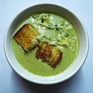 Pea Cream Soup with Leeks and Croutons