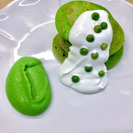 Fry the pancakes in vegetable oil, place on a plate, top with sour cream, and serve the remaining pea puree alongside.
