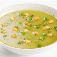 Pea soup can be made with vegetable broth.