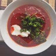 Chop the herbs, finely chop the garlic, cut the bacon into strips, and add everything to the soup 1–2 minutes before it is done. Remove from heat and let it steep for 30 minutes.