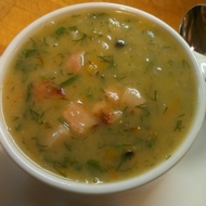 Pea soup with smoked ribs and bacon.