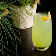 Pour lemon vodka, honey liqueur, and 60 ml of green pea lemonade (the remaining lemonade can be used for cocktails or enjoyed on its own with ice) into a glass (highball) filled with ice.