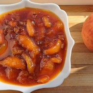 Put the pot with peaches on the heat, bring to a boil, and simmer for about 10–15 minutes, stirring occasionally and skimming off the foam.