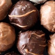 Dip half of the balls in melted chocolate and the other half in melted caramels. Place on the baking sheet and chill.
