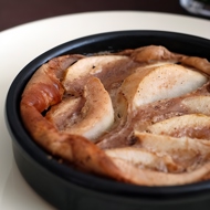 Preheat the oven to 356°F. Spread the filling on the cooled dough and press pieces of pear into the almond mixture (each pear should be peeled and cut into large slices, removing the cores). Place the tart in the center of the oven and bake for 30 minutes, until the edges of the dough are golden brown. Cool and serve with vanilla ice cream.