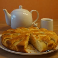 Take a 28 cm springform pan, fill it with the batter, and alternately layer the pears and apricots on top.