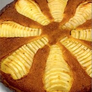 Peel the pear, cut it in half lengthwise, then slice each half crosswise into many pieces (but do not separate the fruit into slices).