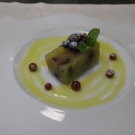 Before serving, remove the terrine from the mold if it hasn't been portioned beforehand, and cut with a warm knife.