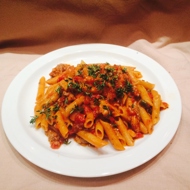 Drain the penne and mix well with the sauce. If the sauce is too dry, gradually add some pasta water until the desired consistency is reached.