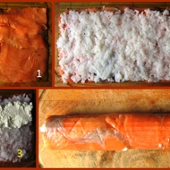 On a mat, lay out the fish in a nice even layer.
