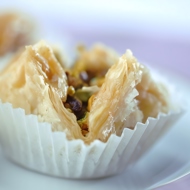 Phyllo pastries with eggplant, pistachios, and feta filling