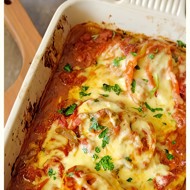 Simmer the sauce for 5 minutes over low heat. Pour it over the chicken and vegetables. Cover with foil and bake in the oven at 392°F for 30 minutes.