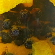 In a two-liter jar, place a dill umbrella, top it with grapes (it's not necessary to separate each berry from the stems; small clusters with five to six berries can be used), and add small bay leaves and pepper.